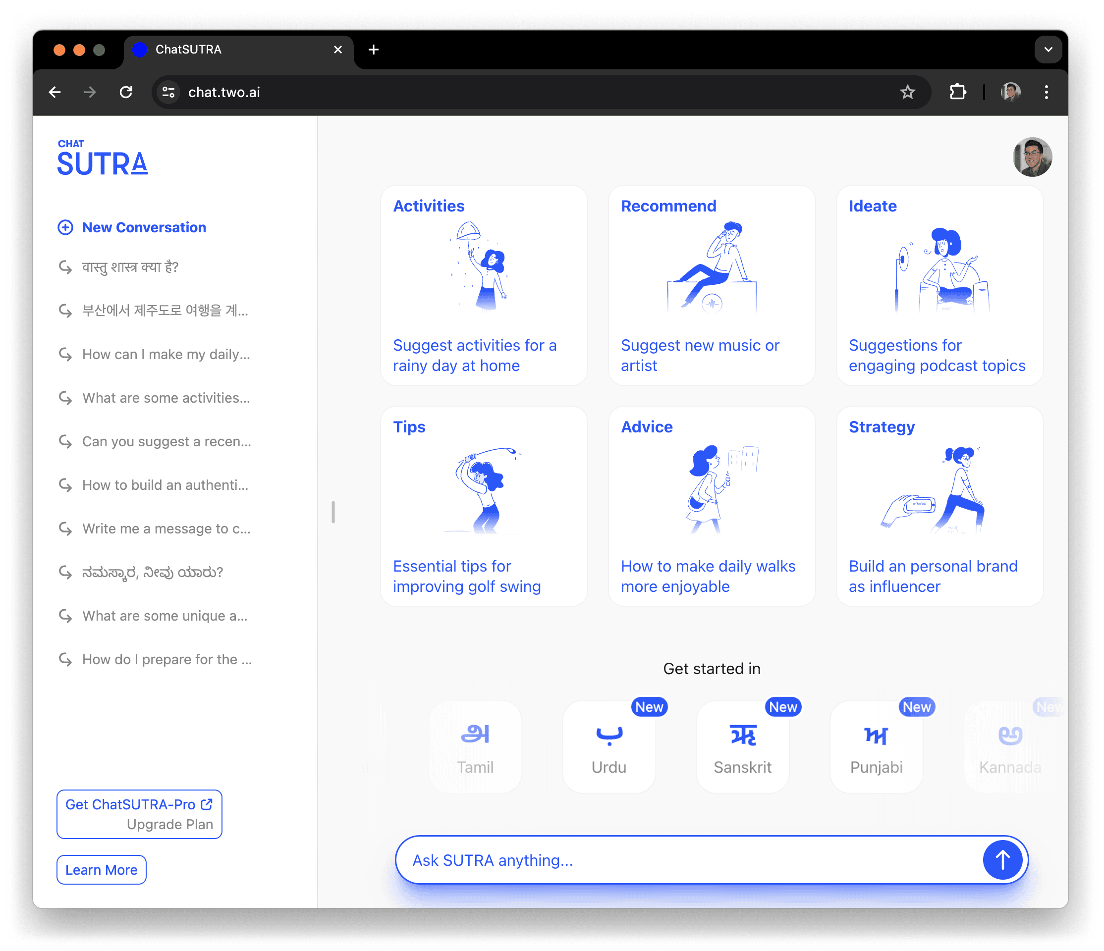 ChatSUTRA-Pro will be available later next year, giving users early access to TWO’s latest and greatest features, higher limits on chat messages, and access to SUTRA’s best, most performant models.