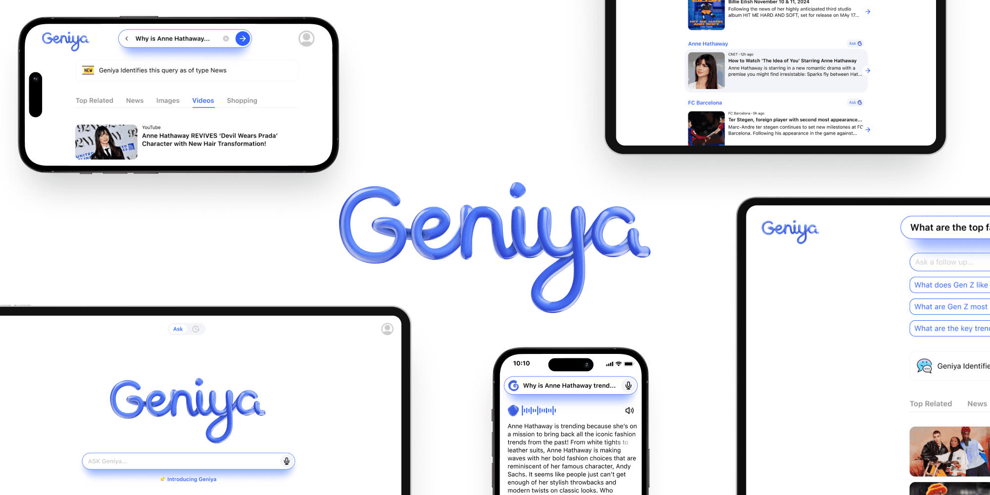 Geniya is designed for the information-seeking generation that values direct answers, video tutorials, and influencer opinions. With its unique personality, Geniya dynamically alters how it presents information through intelligent understanding of the query's intent and context.